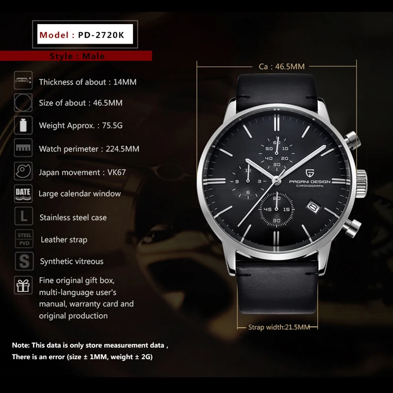 - Feature: Stop Watch,Shock Resistant,Auto Date,Chronograph,Complete Calendar,Water-Resistance,Luminous Hands