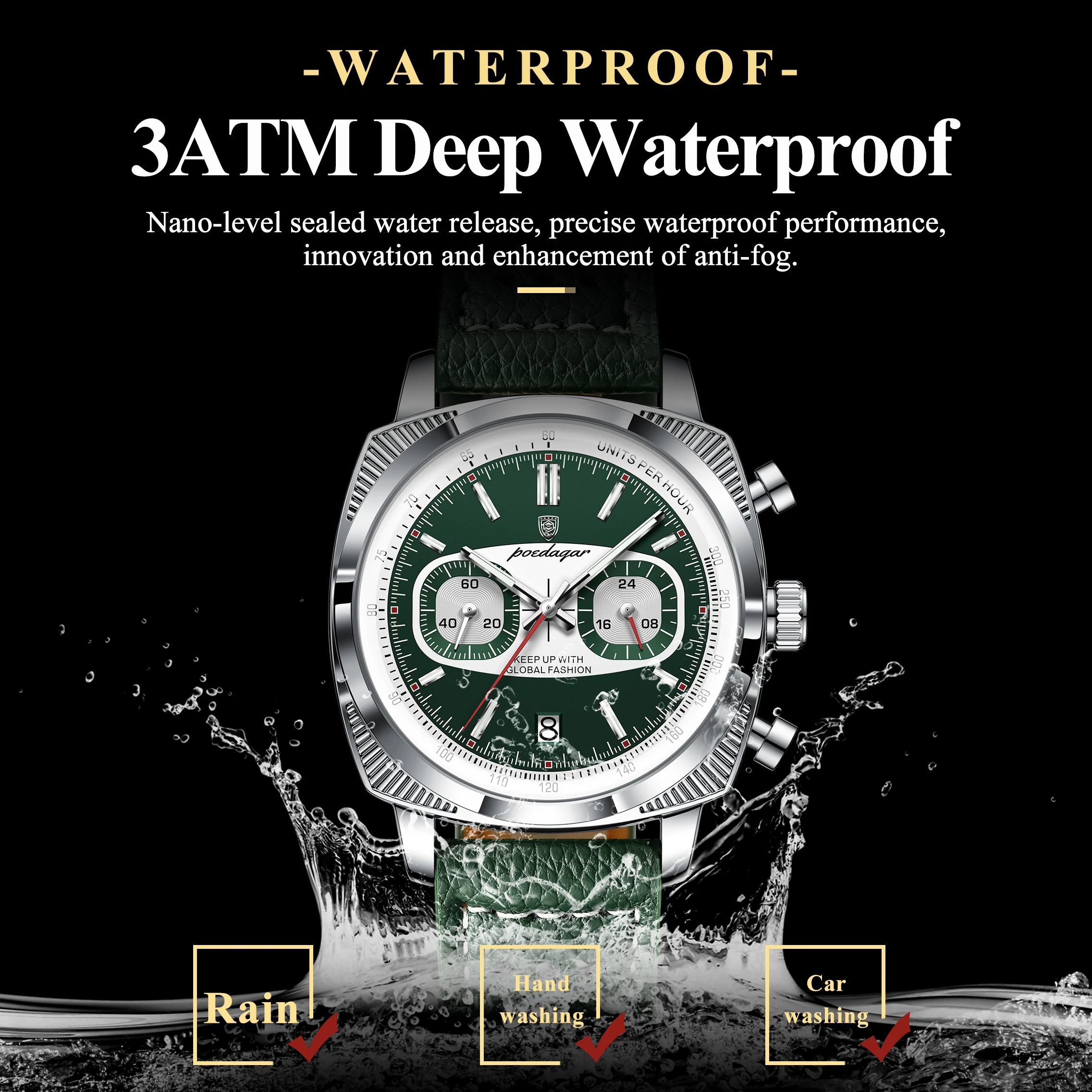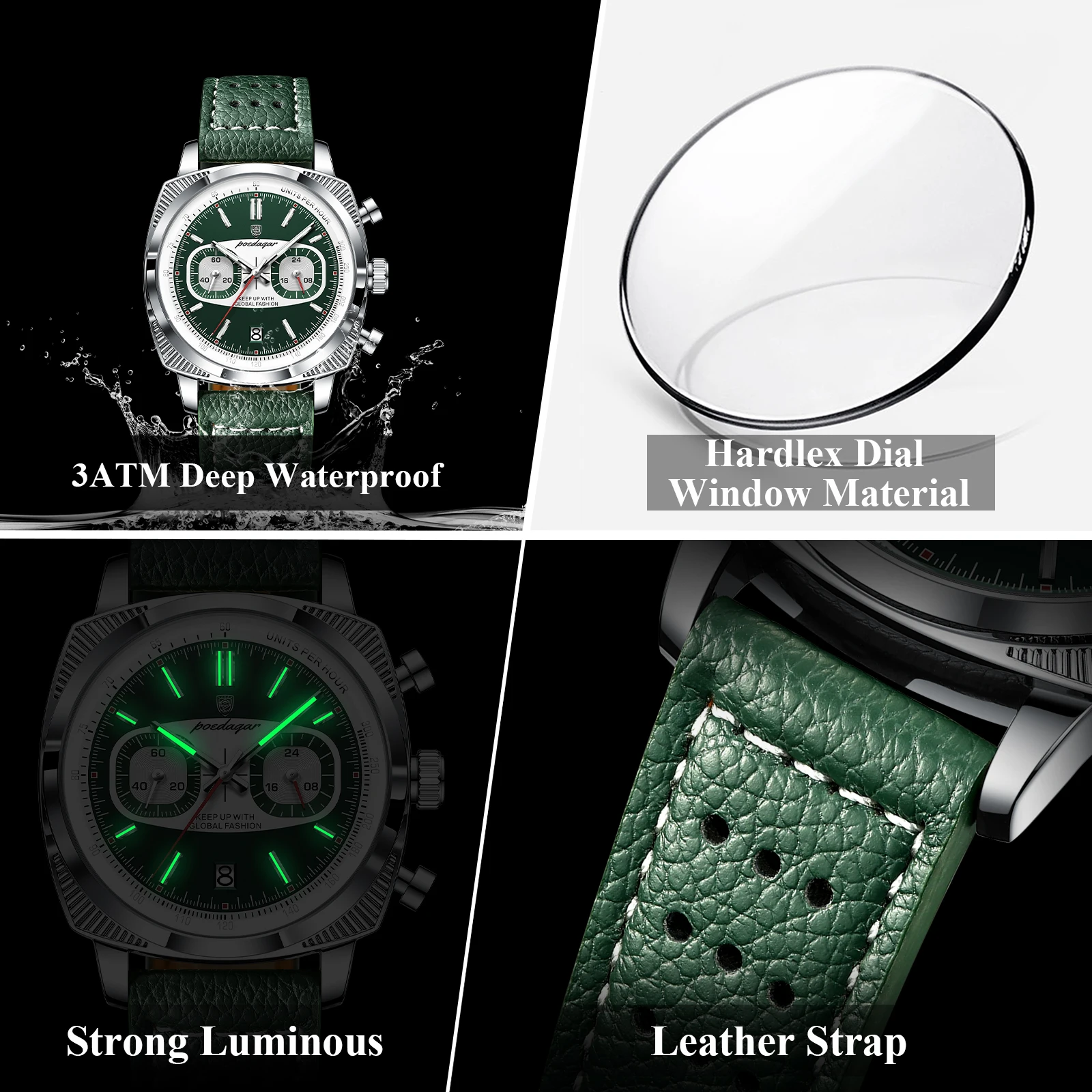 - Feature: Luminous,Auto Date,Chronograph,DIVER,Water-Resistance,swim,Luminous Hands