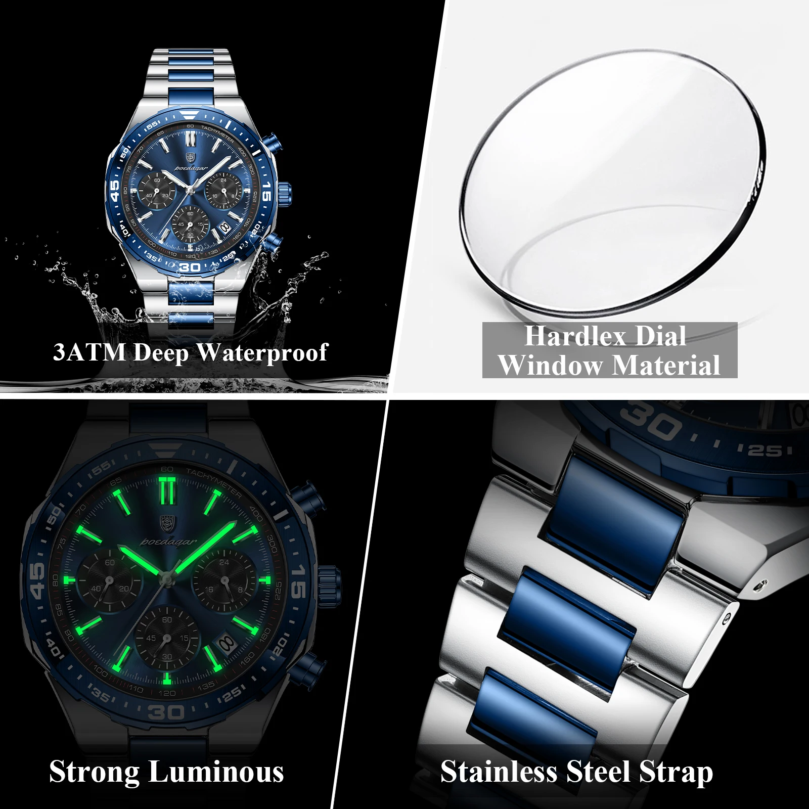 • Feature: Luminous,Auto Date,Chronograph,DIVER,Water-Resistance,swim,Luminous Hands