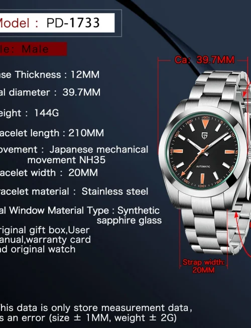 • 2025 New PAGANI DESIGN PD1685 Men's Watches Mechanical Wristwatch For Men Automatic Watch Men Japan NH35A 20Bar Waterproof Clock
